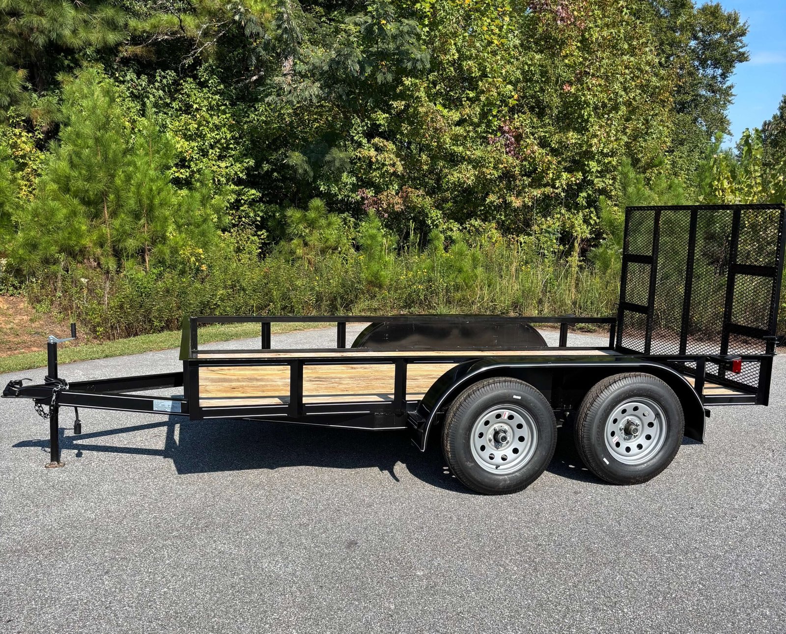 Down Home Tandem Axle Utility Trailers are built to handle your most challenging hauling needs. Featuring two 3500 lb easy grease American-made axles for a 7k gross vehicle weight rating, these trailers ensure smooth and reliable performance, even under heavy loads. The treated 2″ x 8″ wood floor provides a sturdy and durable surface for all your cargo. The full wrap tongue design adds extra strength and stability, making it a reliable choice for various tasks. Whether you’re transporting equipment, vehicles, or materials, this trailer is designed to deliver dependable performance day in and day out.